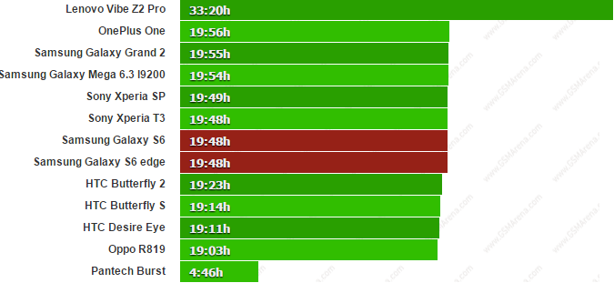 تست وبگردی نیز گلکسی اس 6 با بنچمارک خوبی پشت سر گذاشته است و هر دو گوشی 10:56 ساعت را ثبت کرده اند.