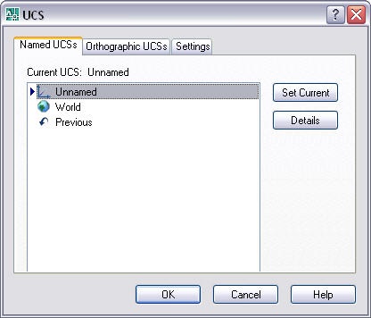 پس از ایجاد و تنظیم سیستم Ucs سفارشی می توانید آن را ذخیره نمایید. سپس می توانید به سرعت بین سیستم Wcs پیش فرض و سیستم Ucs سفارشی سویچ کنید. ابتدا یک سیستم مختصات(Ucs) بر اساس آنچه گفته شد بسازید و سپس از منوی Tools گزینه Named ucs را انتخاب می کنیم. پنجره Ucs به نمایش در می آید سربرگ Named Ucs را فعال می کنیم. .نام سیستم مختصات ucs جدید با نام Unnamed معرفی شده است. آن را کلیک نموده و نام مد نظر را تایپ می کنیم و در پایان دکمه Ok را فشار می دهیم.